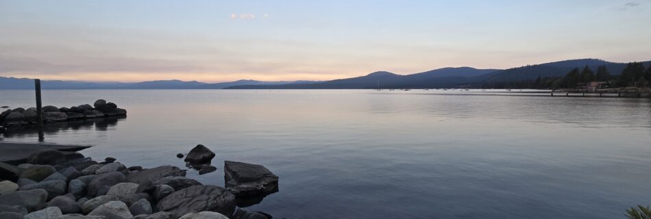 Bei noch pechschwarzer Nacht ging es los in Richtung Lake Tahoe. Bei Kälte und erster Morgendämmerung brausten wir den Pass hoch zum See, um dort bei Sonnenaufgang Kaffee aus dem Thermoskrug zu trinken. Darauf folgten die Tannenwälder mit Mammutbäumen und weiter westwärts die Steppenlandschaften Nordkaliforniens. Sogar Lucerne haben wir besucht!